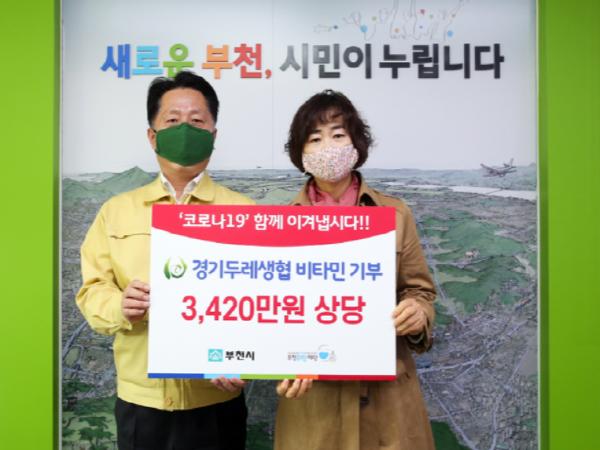 지난 17일 경기두레생협이 코로나19 극복을 위해 사용해달라며 3,420만 원 상당의 비타민을 부천시에 기탁했다.