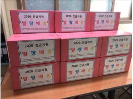 부천시일시청소년쉼터는 한국청소년쉼터협의회의 ‘2020년 복권기금 저소득 아동·청소년 안전 강화 지원사업’과 부천시청 직장 동호회 ‘소잉스토리’의 후원금을 전달받아, 간편 조리식품과 개인위생관리를 위한 칫솔, 치약, 마스크, 손 소독제, 손 소독제 티슈 등으로 긴급구호물품을 구성했다.