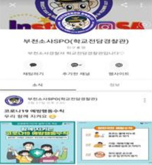 부천소사경찰서(서장 이경자)는 사회적 거리두기의 일환으로 지난 9일 실시한 단계적 온라인 개학에 맞추어 비대면 학교폭력 예방 활동을 강화하기 위해 SNS를 활용한‘부천소사 학교전담경찰관 카카오톡 채널’을 개설하여 활용중이다.