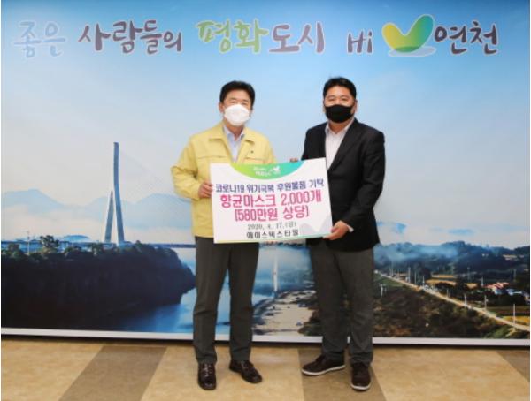 김광철 연천군수는 “현재 중소기업들이 경제적인 어려움을 겪고 있는 가운데 직접 생산한 항균마스크를 지역사회 감염병 예방을 위해 지원을 해주신 강헌구 대표님께 감사드리며, 기탁한 후원물품은 사회복지공동모금회를 통해 관내 취약계층에게 골고루 전달하도록 하겠다”고 전했다.