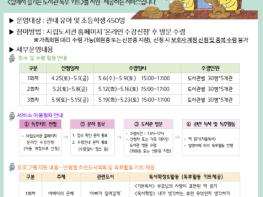 신청방법은 오는 25일 1회차부터 도서관 홈페이지를 통해 선착순으로 접수 가능하며, 5월 6일부터 신청 도서관에서 수령가능하다.