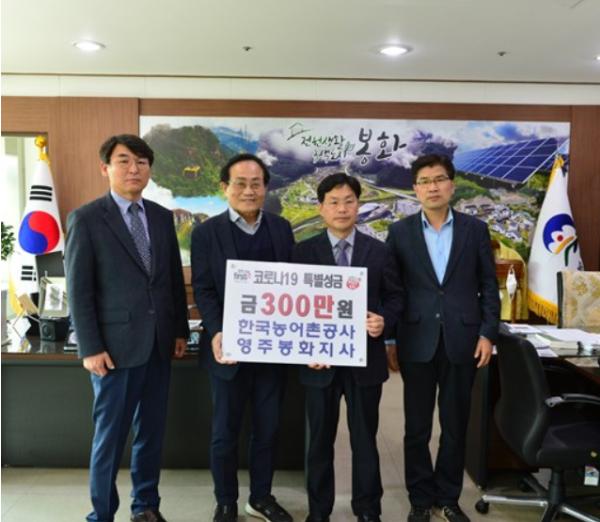 한국농어촌공사 영주봉화지사(지사장 이승호)에서 4월 16일(목) 봉화군청을 방문하여 코로나19 극복을 위한 특별성금 300만원을 기탁했다.