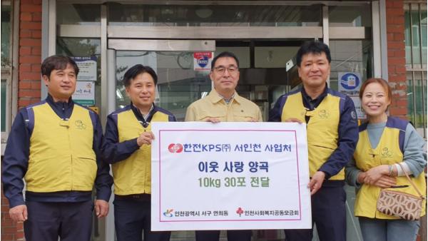 한전KPS(주) 서인천사업처는 지난 20일 연희동 관내 어려운 이웃에게 전해 달라며 양곡 10kg 30포(110만원 상당)를 연희동 행정복지센터(동장 고문채)에 전달했다.