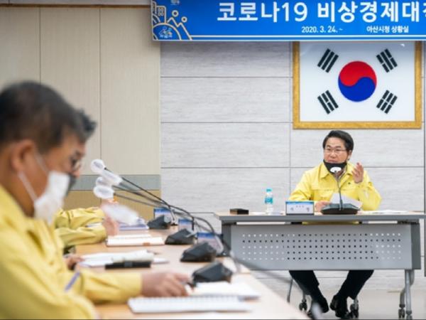 아산시(시장 오세현)는 4월 20일 시청 상황실에서 개최된 제6차 코로나 비상경제 대책회의에서 코로나19 사회적 거리두기 연장에 따른 추진계획 및 지역경제 활성화를 위한 대책을 논의했다.