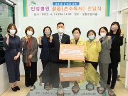 이날 지원된 손소독제는 김병인 병원장과 임직원들이 코로나19 사태로 인한 지역 주민들의 고충을 함께 나누기 위해 건어물 바자회 행사를 실시하고 그 수익금으로 마련한 것이다.