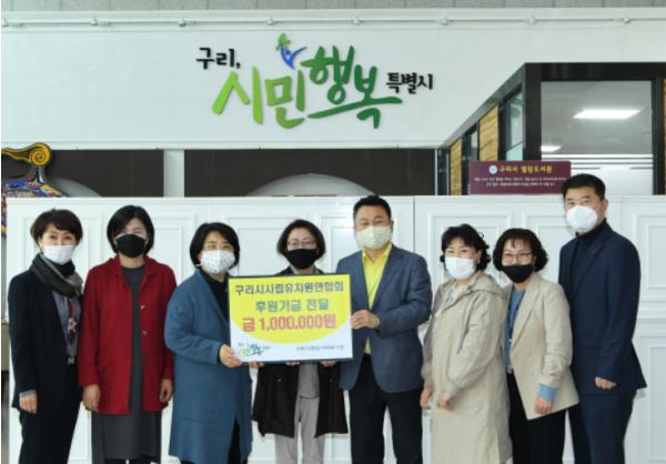 구리시(시장 안승남)는 지난 21일 구리시사립유치원연합회(회장 고순희)에서 지역 내 아동의 코로나19 극복을 위한 후원금 100만원을 구리시종합사회복지관(관장 이상희)에 전달했다고 밝혔다.