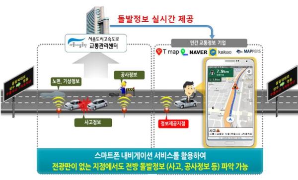 이제 강변북로, 올림픽대로 등 서울시내 도시고속도로에서 교통사고나 긴급 보수공사 등 돌발상황이 발생했을 때 스마트폰으로 미리 확인해 우회하거나 다른 경로를 모색할 수 있게 된다.