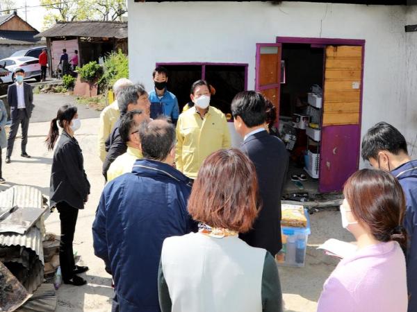 이날 방문에서 조 군수는 생필품 세트와 백미 등을 해당 가구에 전달하며 관련부서에 신속한 피해회복을 위한 긴급지원 생계비와 주거비를 지급할 것을 지시했다.