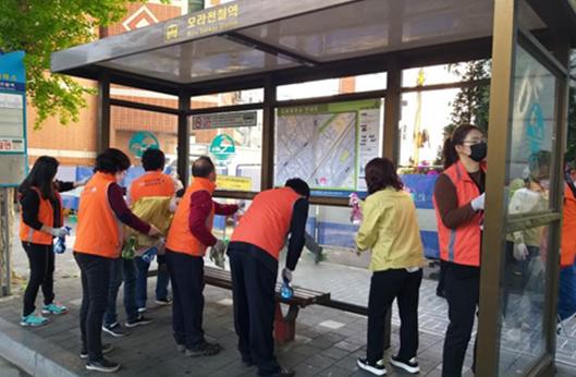 사상구 모라1동 지역사회보장협의체(위원장 김성락)에서는 지난 21일 코로나19 대응 및 확산 방지를 위해 관내 버스정류장과 지하철역, 시장 등 다중이용시설 중심으로 방역을 실시했다.