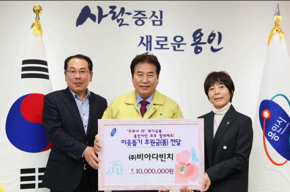 용인시는 20일 처인구 남사면 소재의 의약품 도매업체인 비아다빈치서 어려운 이웃의 코로나19 극복을 돕는 성금 1천만원을 기탁했다고 밝혔다.