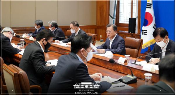 이와 함께 대통령은 "범국가적 차원에서 새로운 일자리 창출을 위한 대규모 사업을 대담하게 추진할 필요가 있다"며 "관계 부처는 대규모 국가 프로젝트로서 이른바 '한국판 뉴딜'을 추진할 기획단을 신속히 준비해 주기 바란다"고 당부했다.