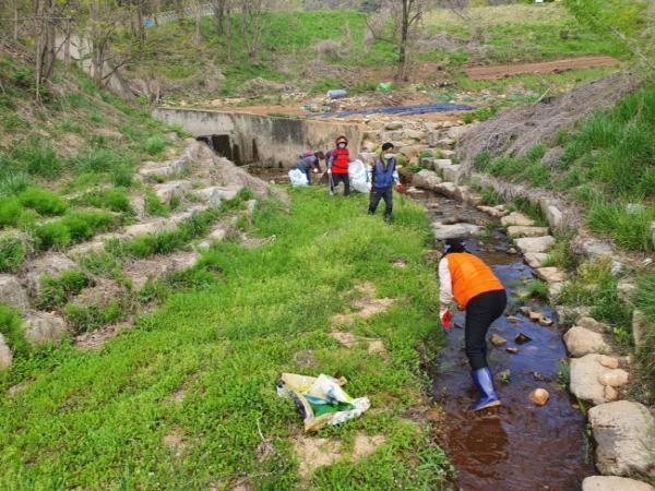 상모사곡동(동장 김용수)에서는 2020. 4. 23.(목) 지역공동체 일자리 사업 및 공공근로 일자리 사업 참여자들과 함께 상모사곡동 내 상모천 주변 정화 활동을 실시하였다.