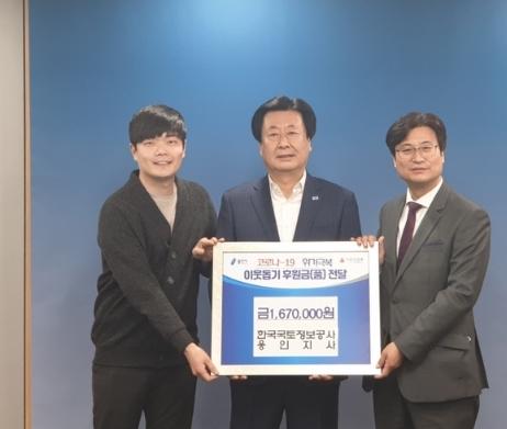 용인시 처인구는 23일 한국국토정보공사 용인지사(지사장 이승환)에서 코로나19로 어려움을 겪는 이웃들을 위해 167만원의 성금을 기탁했다고 밝혔다.