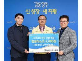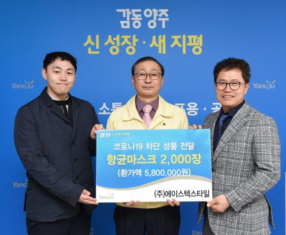양주시(시장 이성호)는 지난 22일 관내 소재 원일콘크리트(대표 김산원)에서 면마스크 1,000장을, ㈜에이스텍스타일(대표 강헌구)에서 항균마스크 2,000장을 기부했다고 밝혔다.