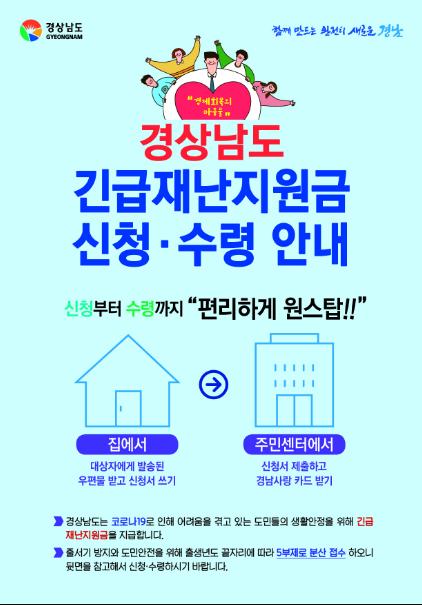 거제시는 코로나19 피해로 생계가 곤란해진 피해계층과 위축된 지역경기 활성화를 위해 경상남도와 함께 23일부터‘경남형 긴급재난 지원금’을 지급한다고 밝혔다.