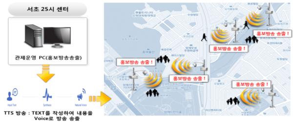 이에 구는 서초경찰서 범죄예방팀의 아이디어를 제공받아 지역내 위치한 경찰서(서초?방배)와 협업하여 범죄 취약대상인 아동과 여성이 안전하게 통행할 수 있도록 동보시스템을 준비했다.