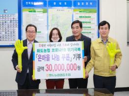 남양주시 화도농협(조합장 최상복)은 24일 화도수동행정복지센터(센터장 박부영)를 방문해 코로나19 극복을 위한 특별성금 3,000만원을 전달했다.