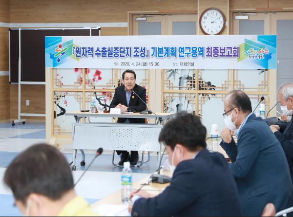 울진군(군수 전찬걸)은 24일 울진군청 대회의실에서 울진군수를 비롯, 용역수행기관인 서울대학교 산학협력단연구원, 자문위원 등 30여명이 참석한 가운데‘원자력수출실증단지 조성’기본계획 연구용역 최종 보고회를 개최했다.