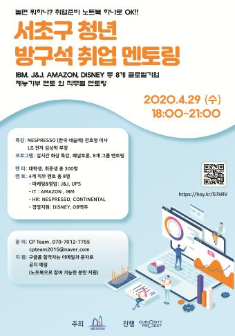 서울 서초구(구청장 조은희)가 글로벌기업 입사를 꿈꾸는 청년들을 위해 언택트(비대면) 방식을 활용, 세계굴지의 글로벌기업 현직 멘토와 함께하는 ‘서초 방구석 취업 멘토링’ ’을 개최한다.
