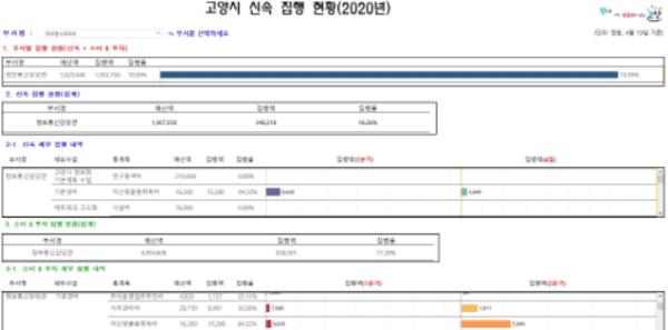 고양시(시장 이재준)는 지방 재정 신속집행 정책 현황을 한눈에 볼 수 있는 빅데이터 기반의 ‘재정 알리미 서비스’를 자체적으로 구축해 서비스를 운영 중에 있다고 24일 밝혔다.