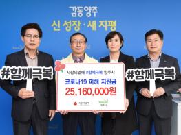 양주시(시장 이성호)는 지난 23일 경기북부 사랑의열매(본부장 강주현)에서 양주시청을 찾아 코로나19로 위기에 처한 저소득층을 위해 써달라며 성금 2,500만원을 기부했다고 밝혔다.