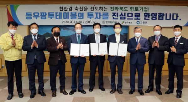 유기상 고창군수는 “이번 투자를 결정해준 주)동우팜투테이블에 고창군민의 마음을 모아 감사와 환영의 인사를 전한다”며 “전례 없는 코로나19로 인해 여러 어려움에 직면해 있는 이때, 고용과 국가경제의 가장 중요한 기반인 기업과의 상생협력이 더욱 중요해지고 있다”고 말했다.