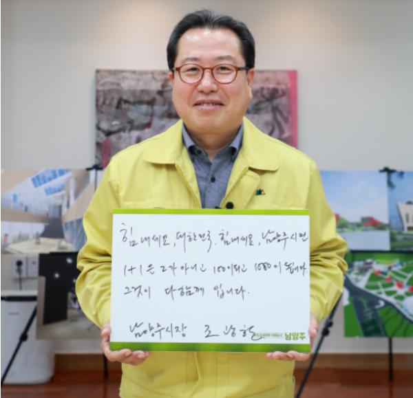 경기 남양주 조광한 시장이 27일 코로나19로 어려움을 겪고 있는 대한민국 국민과 남양주 시민에게 희망과 응원의 메시지를 전달하는‘희망 캠페인’ 릴레이에 동참했다.