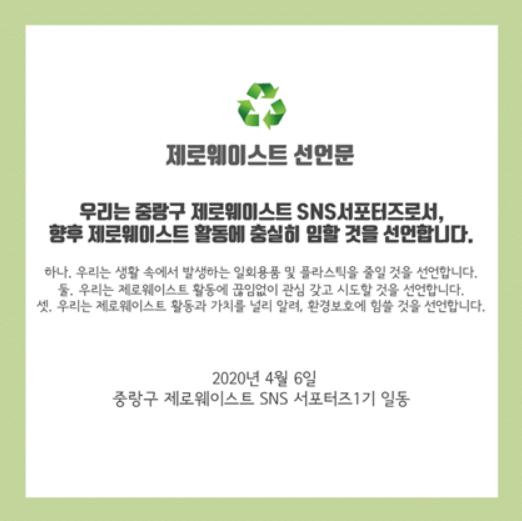 류경기 중랑구청장은 “현재의 작은 불편을 감수해야 미래의 큰 위기를 막아낼 수 있다”라며, “이번 제로웨이스트 SNS 서포터즈 활동을 통해 중랑구 곳곳에 제로웨이스트 문화가 확산되길 바란다”고 말했다.