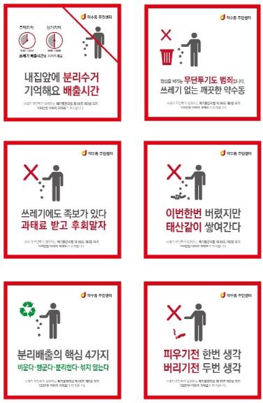 주민들이 쓰레기 분리배출 시간을 잘 지키고 재활용품 분리와 음식물 쓰레기를 혼용하지 않도록 쉽게 이해할 수 있는 표지판 문구나 홍보용 리플릿 그림도 그려보고 타지자체 정책도 벤치마킹해 의견을 나누기도 한다.