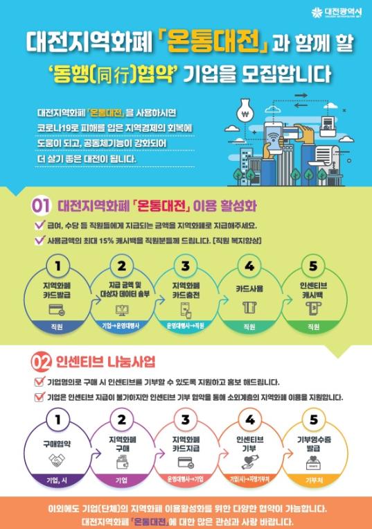 대전시는 대전지역화폐‘온통(On通)대전’을 함께할 동행(同行) 협약 대상을 모집한다.