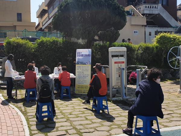 코로나19 사태의 장기화로 인해 각종 보건사업이 잠정 중단되면서 만성질환자의 건강관리에 공백이 생기는 것을 우려하여, 금정구 건강생활지원센터는 이동건강상담실을 통해 어르신들의 체온·혈압·혈당을 측정하고 코로나19 예방을 위한 손소독제를 배부하였다.