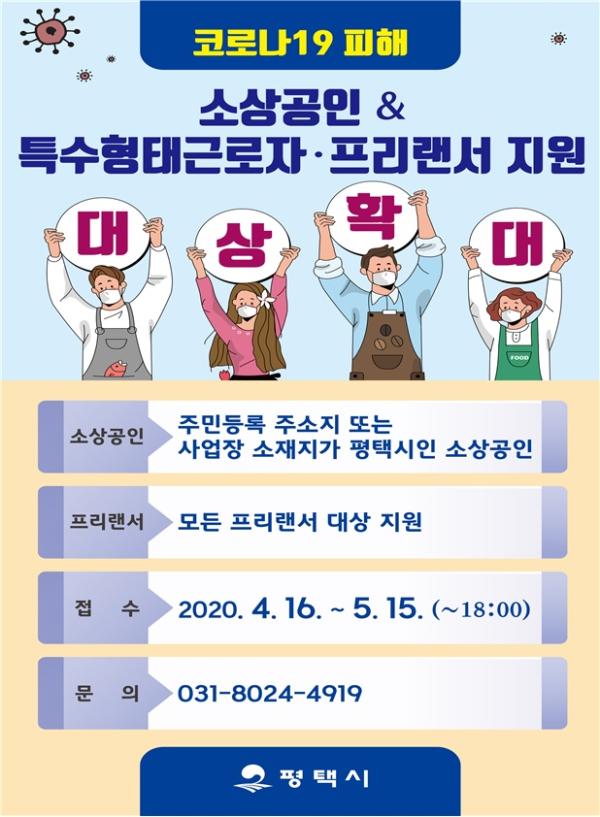 평택시(시장 정장선)가 코로나19로 어려움을 겪고 있는 소상공인 등 긴급 지원 대상을 더욱 확대한다.