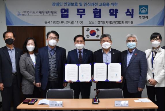 부천시는 지난 24일 경기도지체장애인협회와 부천시의 장애인 인권 의식 향상을 위한 상호 협력을 도모하는 ‘장애인 인권 보호 및 인식 개선 교육을 위한 업무 협약’을 체결했다.