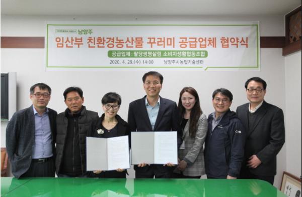 남양주시(시장 조광한)는 29일 미래세대의 건강을 위해 임산부에게 친환경 농산물을 꾸러미 형태로 공급하는‘임산부 친환경농산물 꾸러미 지원사업’추진을 위해 팔당생명살림소비자생활협동조합(대표 장순례)과 친환경농산물 공급협약을 체결했다.