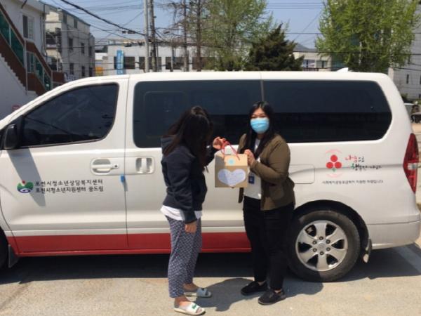 포천시학교밖청소년지원센터(센터장 최후남)는 센터 소속 학교 밖 청소년 대상으로 ‘슬기로운 집콕생활’ 키트를 제작해 28일, 29일 드라이브 스루(drive-thru)방식으로 서비스를 제공했다.
