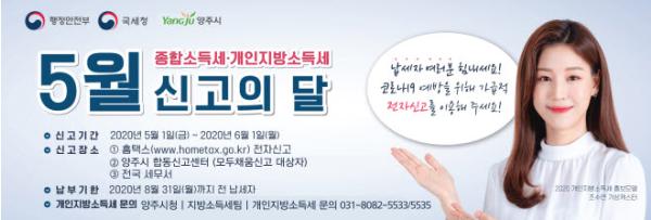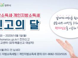 양주시(시장 이성호)가 오는 5월 1일부터 6월 1일까지 한 달간 시청 세정과와 의정부 세무서 등 2곳에 종합소득세·지방소득세 합동신고센터를 운영한다고 밝혔다.