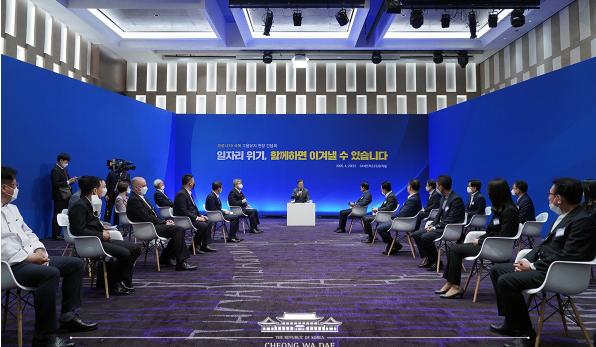 문 대통령은 특히 “정부의 가장 큰 걱정은 고용과 일자리를 어떻게 지킬 것인가”라며 “지금의 상황에서 기업의 사회적 기여 혹은 책임은 고용을 유지하는 것이다. 기업 혼자만의 힘으로 부족한 상황에서 정부는 강력한 지원 정책으로 기업의 위기극복을 뒷받침할 것이다”라고 강조했다.