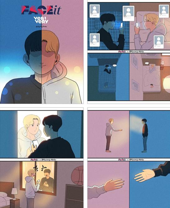 “자신과 타인, 세상과 마주하고 나아가자”라는 뜻을 담은 ‘FACE it’ 시리즈는 ‘치유하고 성장’하는 스토리를 전달한다. 그간 공개된 트레일러 영상의 움직임을 묘사해 만든 이번 일러스트 버전으로 보는 이들의 공감대를 자극, 팬들의 뜨거운 반응을 모으고 있다. 풀 버전은 베리베리와 명민호 작가의 SNS를 통해 확인할 수 있다.