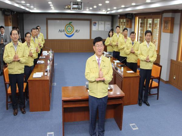 나주시는 5월 5일까지 정부의 사회적 거리두기 시행 연장 조치에 따라 이날 정례조회를 전 직원 영상 시청으로 대체하고 참석 인원과 절차를 최소화해 진행했다.