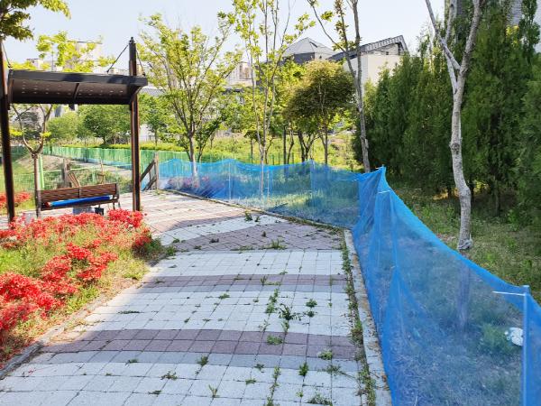 중구는 장현동 100번지 일원에 산란 이후 회귀하는 두꺼비와 부화 후 산으로 이동하는 새끼두꺼비를 위한 그물망 생태통로를 설치했다.