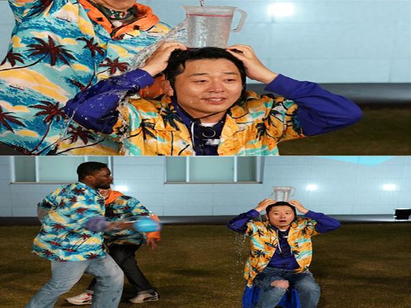 이 가운데 공개된 스틸 속에는 제대로 물 만난 김준호의 모습이 담겨있어 웃음을 선사한다. 김준호는 머리 위에 물이 가득 든 비커를 얹고 있는데, 비커의 위가 아닌 옆면에서 폭포수 같은 물줄기가 콸콸콸 쏟아져 나와 시선을 강탈한다. 이에 황당함을 감추지 못하는 김준호의 표정이 눈길을 사로잡는 한편, 샘 오취리로 하여금 물따귀를 영접하기 1초전 모습이 포착돼 폭소를 자아낸다.