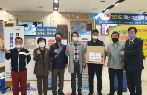 파주시 이통장연합회(회장 성기율)는 지난 1일 손배찬 파주시의회 의장과 함께 코로나19 파주형 긴급생활지원금 교부 현장을 방문해 직원들을 격려했다.