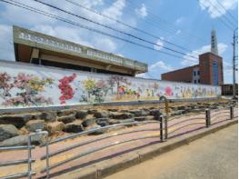 벽화에는 무궁화 전국지도, 고무줄놀이 하는 아이들과 말뚝박기 놀이 하는 아이들 등 무궁화와 어우러져 함께하는 그림들이 가득 담겨져 있다.