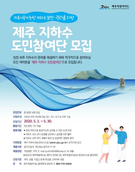 제주특별자치도가 지역 주민과 함께 지하수 문제를 해결하기 위해 「제주 지하수 도민참여단」을 공개 모집한다.