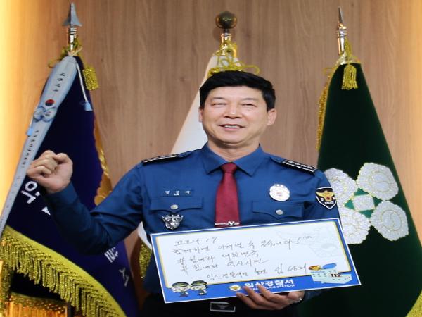 익산경찰서장 총경 임성재는 지난 4일 코로나19로 어려움을 겪고 있는 대한민국 국민과 익산시민에게 희망과 응원의 메시지를 전달하는 ‘희망 캠페인’릴레이에 동참하였다.