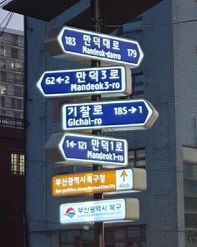 부산 북구(구청장 정명희)는 친환경 LED 조명 도로명판(멀티사인시스템)을 차량 통행량이 많은 만덕동 남산정교차로에 시범 설치했다고 4일 밝혔다.