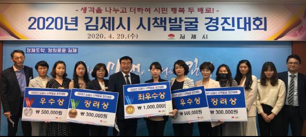 평가 결과 ▲ 최우수상 - 정보통신과 김제시 기록관 시민 아카이빙 사업 ▲우수상 - 인재양성과 work&life balance 슬기로운 나의 직장생활, 농업정책과 마을 만들기 대학 운영 ▲장려상 - 치매재활과 치매어르신 쉼터 분소 운영, 검산동 홀몸 어르신 및 자살 고위험군 반려 식물 나눔 사업이 각각 수상의 영예를 안았다.