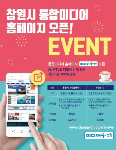 시는 한 달 동안 이어지는 풍성한 이벤트를 통해 통합미디어 홈페이지 ‘미디어 창원’과 #창원TV 구독자가 늘어날 것으로 기대하고 있다.