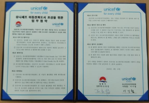 코로나-19 확산방지 등 지역 여건을 고려하여 서면으로 진행된 이번 협약은 아동친화도시 조성사업을 통해 아동이 행복한 도시, 아동의 건강한 성장과 발달이 보장되는 김천시를 만들기 위해 유니세프의 아동친화도시(Child-Friendly City) 사업에 김천시와 유니세프한국위원회가 함께한다는 선언적 의미를 담고 있다.