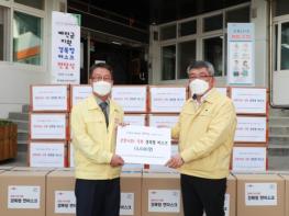 포장작업을 마친 마스크를 예천교육지원청에 전달하면서 등교수업을 앞둔 관내 유치원 및 학교 학생들이 사용할 수 있도록 재활용이 가능한 면 마스크와 교체형 필터 5회분을 지급했다.